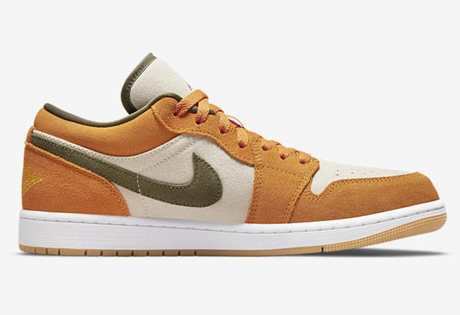 Recently, the New Jordan 1 UK Low has a new color matching official image exposed. The whole pair of shoes is made of brown as the main tone, and suede and canvas are stitched together, which has a good sense of layering and texture. The inner lining and the Swoosh Logo on the side of the shoe use dark brown to show people, creating a stable temperament for the whole pair of shoes. The flying wing logo on the heel is outlined with yellow stitching, which cleverly echoes the color of the shoe body and enriches the sense of hierarchy. Finally, it is finished with a classic white midsole and brown outsole to complete the overall design.